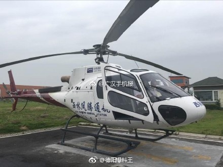 ?? 6月24日,德陽及廣漢市領導搭乘西林鳳騰直升機為茂縣受災群眾送去藥品等救災物資 。